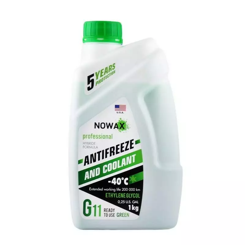 Слить из системы охлаждения старую жидкость, промыть ее с помощью очистителя «Промывка радиатора» NOWAX RADIATOR FLUSH. Залить ANTIFREEZE NOWAX G11 GREEN до необходимого уровня. Данный тип антифриза рекомендуется менять 1 раз в 5 лет. Не смешивать ANTIFREEZE NOWAX G11 GREEN с другими антифризами (напр., G12)!