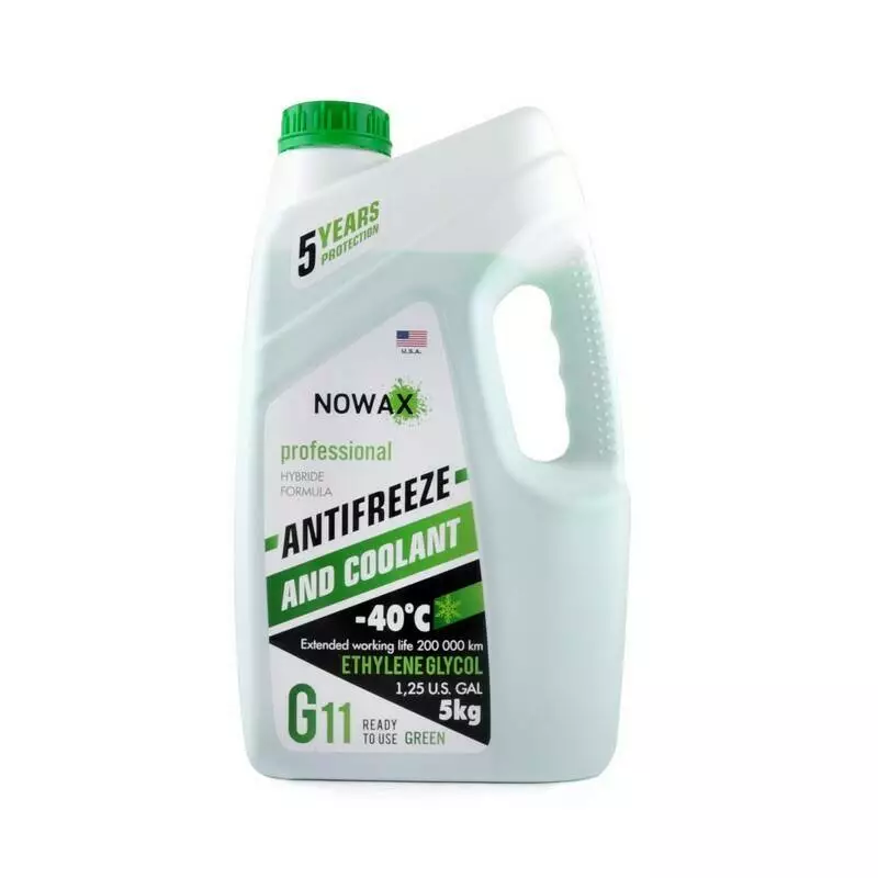 Слить из системы охлаждения старую жидкость, промыть ее с помощью очистителя «Промывка радиатора» NOWAX RADIATOR FLUSH. Залить ANTIFREEZE NOWAX G11 GREEN до необходимого уровня. Данный тип антифриза рекомендуется менять 1 раз в 5 лет. Не смешивать ANTIFREEZE NOWAX G11 GREEN с другими антифризами (напр., G12)!