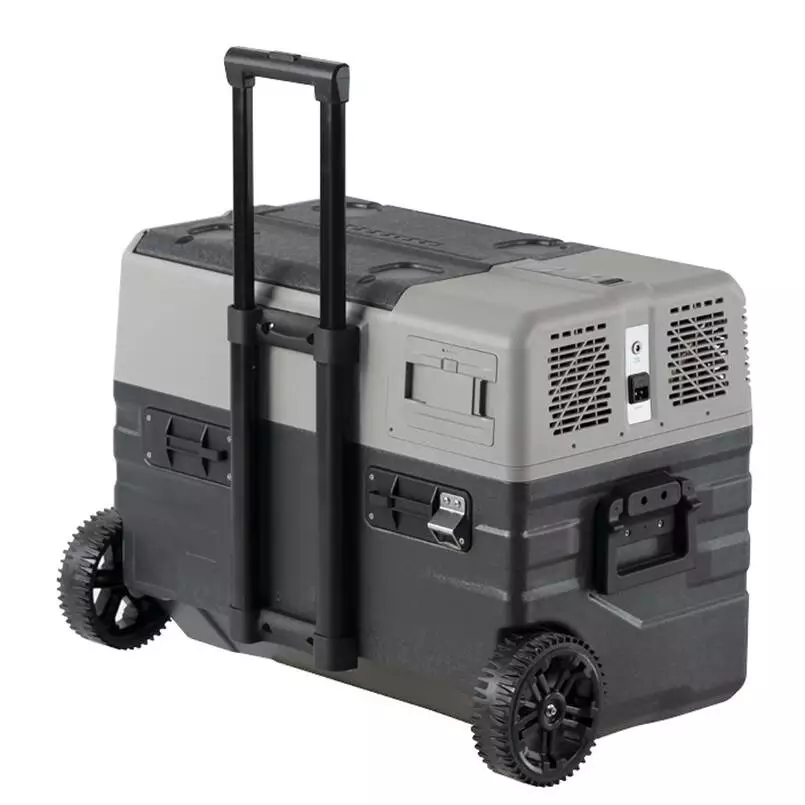 Телескопическая ручка позволяет комфортно перемещать холодильник, а