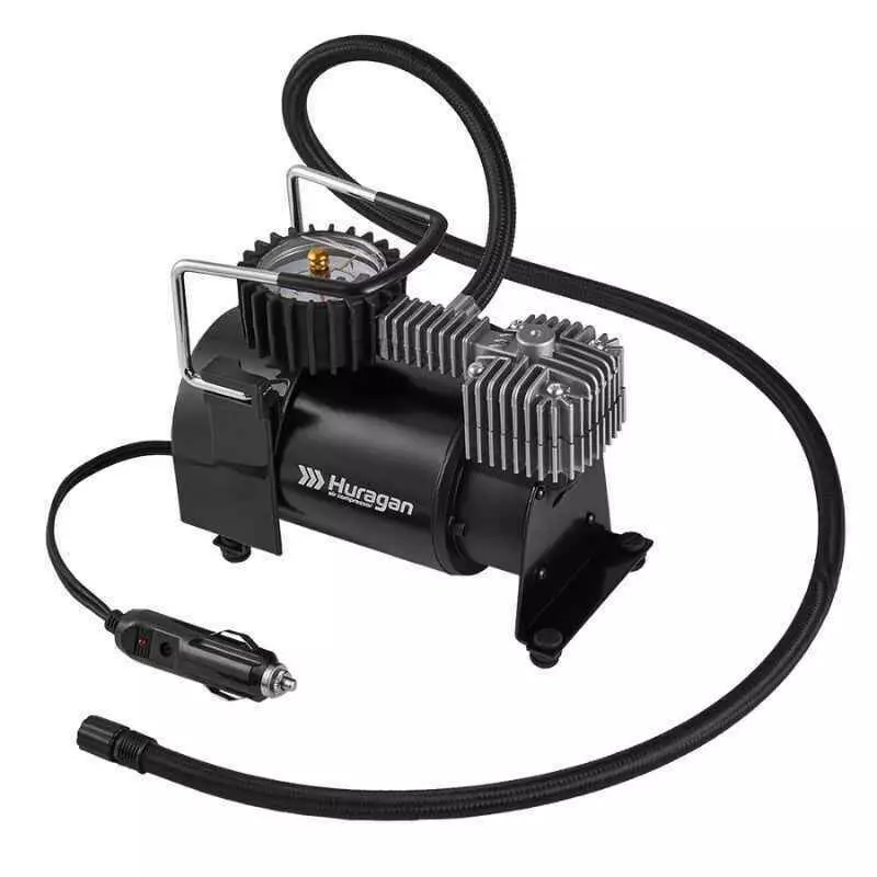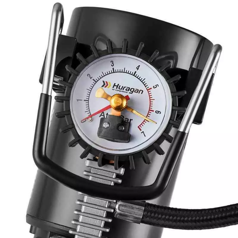 Автокомпрессор однопоршневой от прикуривателя HURAGAN автомобильный компрессор с автостопом для шин R13-R16 7Атм 37л/мин 170Вт (H0400)