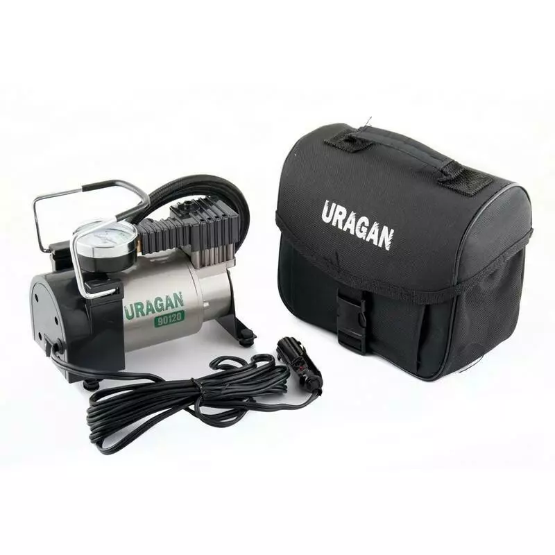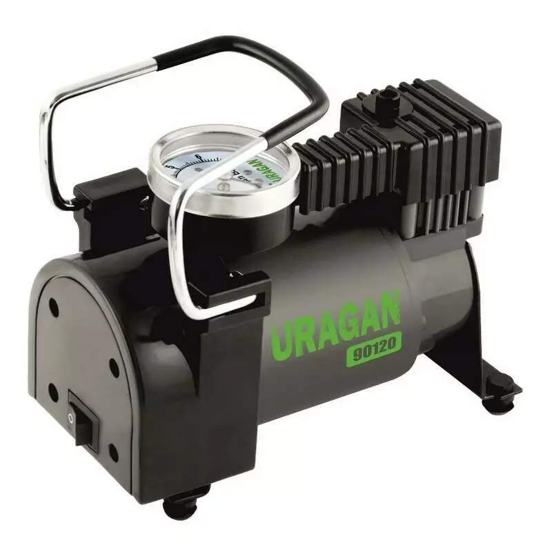 Автокомпрессор однопоршневой от прикуривателя URAGAN автомобильный компрессор для шин R13-R16 7Атм 37 л/мин 170Вт (90120)