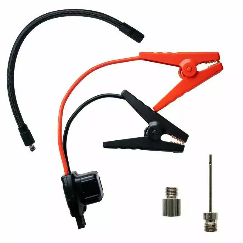 В комплект входят: воздушный компрессор, шланг с клапанами Schrader и Presta, игла для мячей, кабель Type-C, набор зажимов и защитный чехол для хранения.