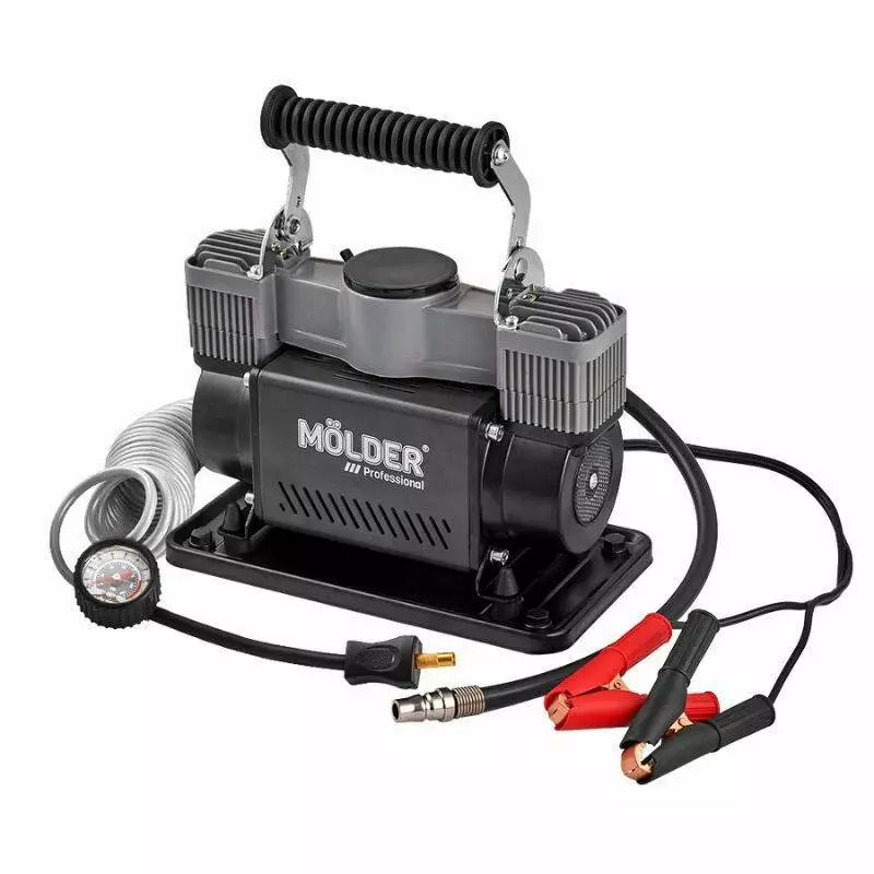 Автомобильный компрессор двухпоршневой MOLDER с витым шлангом 10Атм 90 л/мин 380Вт (MA25300)