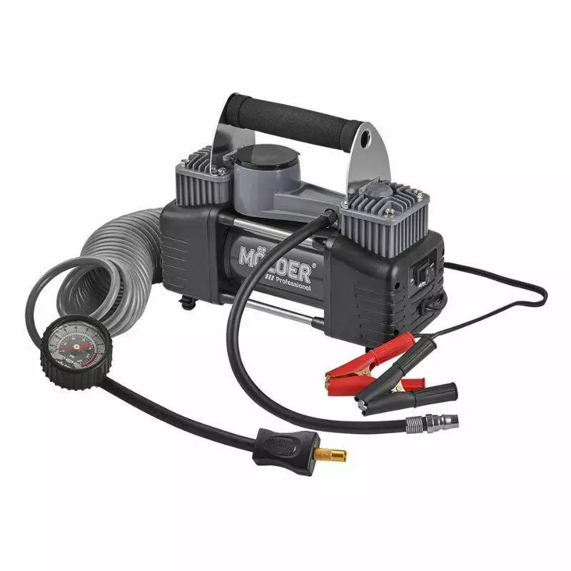 Автомобильный компрессор двухпоршневой MOLDER с витым шлангом для накачки шин R13-R21 10Атм 90 л/мин 360 Вт (MA25200)