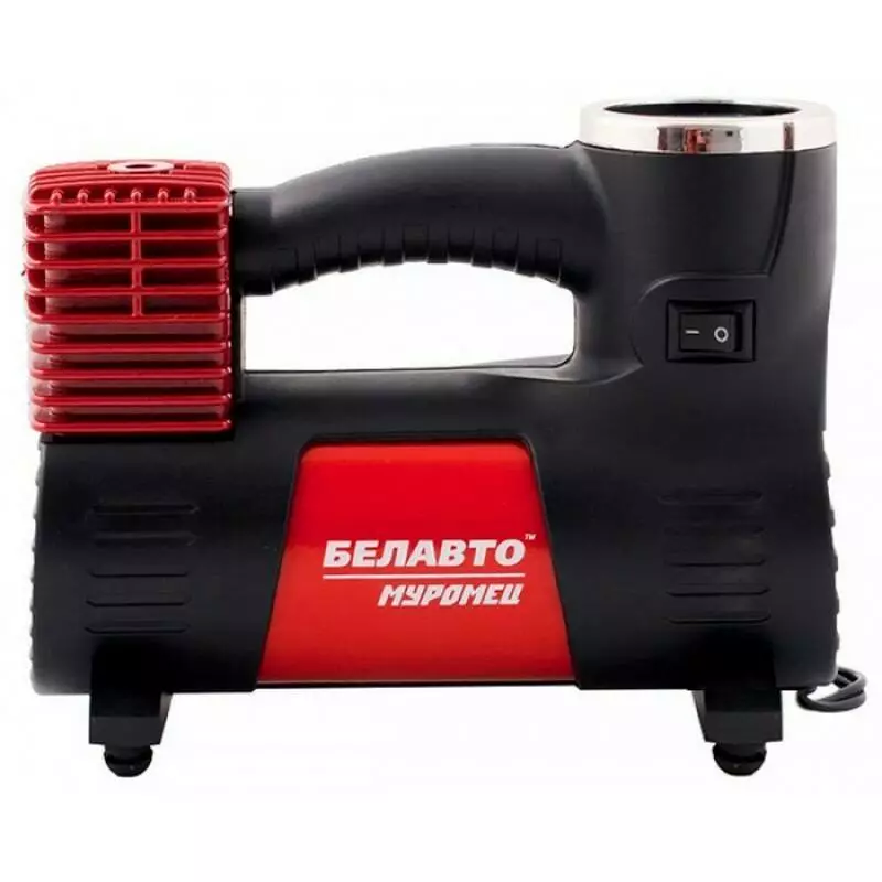 Автомобильный однопоршневой компрессор Муромец от Белавто – мощная модель, быстро и легко накачивающая шины легкового авто разных марок или прочие надувные конструкции (колеса велосипеда, лодки, матрасы). Устройство при всей компактности отличается впечатляющим уровнем мощности, а его работа радует бесперебойностью.