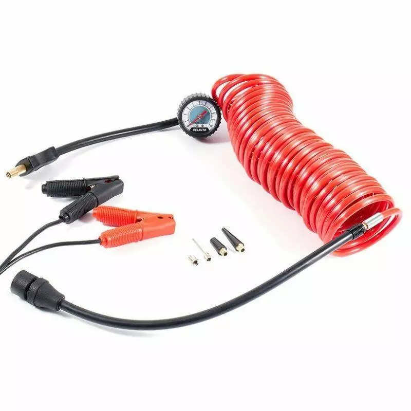 Стоит отметить, что компрессор обладает кнопкой сброса давления, потому обеспечивает контроль за уровнем последнего. Оборудование выполнено из нержавеющей стали и подходит для накачки колес практически любого радиуса.