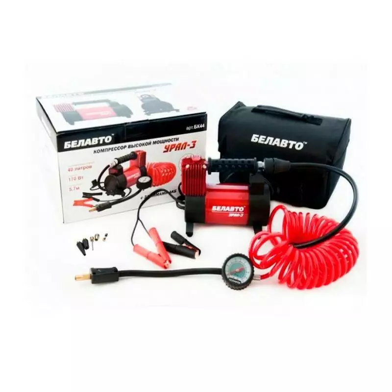 Автомобильный однопоршневой компрессор Урал-3 от Белавто – портативная модель, быстро и легко накачивающая шины легкового авто разных марок, или прочие надувные конструкции (колеса велосипеда, лодки, матрасы). Устройство при всей компактности отличается впечатляющим уровнем мощности, а его работа радует бесперебойностью.