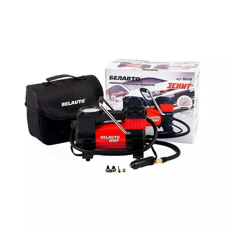 Компрессор BK49 Зенит от БЕЛАВТО подстрахует и быстро подкачает шины, проконтролирует текущее давление в них. Устройство отличается небольшими габаритами в паре с достаточной мощностью и невысокой ценой.