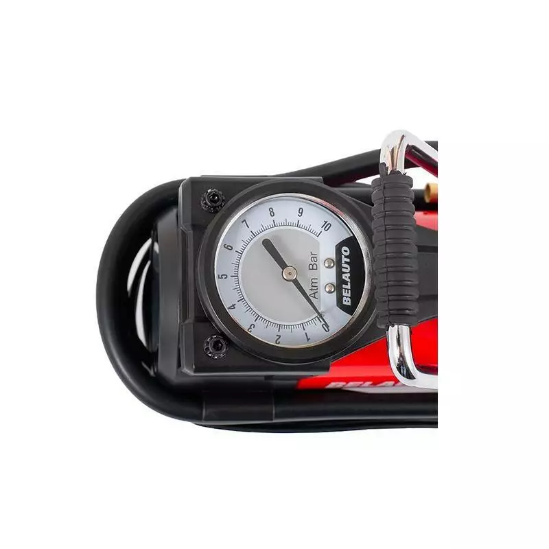 Сердцем компрессора выступает классических поршневой двигатель производительностью 40 л/мин. Потребление энергии при этом остается на оптимальном уровне. Источником питания выступает сеть легкового автомобиля 12 В. Максимальное давление, с которым работает устройство не превышает 10 атм, что оптимально для любых легковых машин, легкогрузовых и большинства грузовых. Для определения текущего давления на корпусе есть удобный аналоговый металлический манометр.
