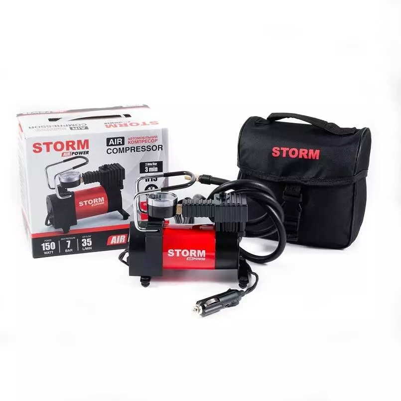 Автомобильный компрессор в прикуриватель однопоршневой для шин R13-R15 STORM Air Power 7Атм 35л/мин 150Вт (20200)