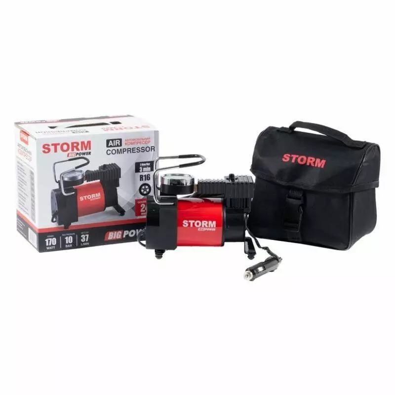Автомобильный компрессор в прикуриватель однопоршневой для шин R13-R16 STORM Big Power 10Атм 37л/мин 170Вт (20300)