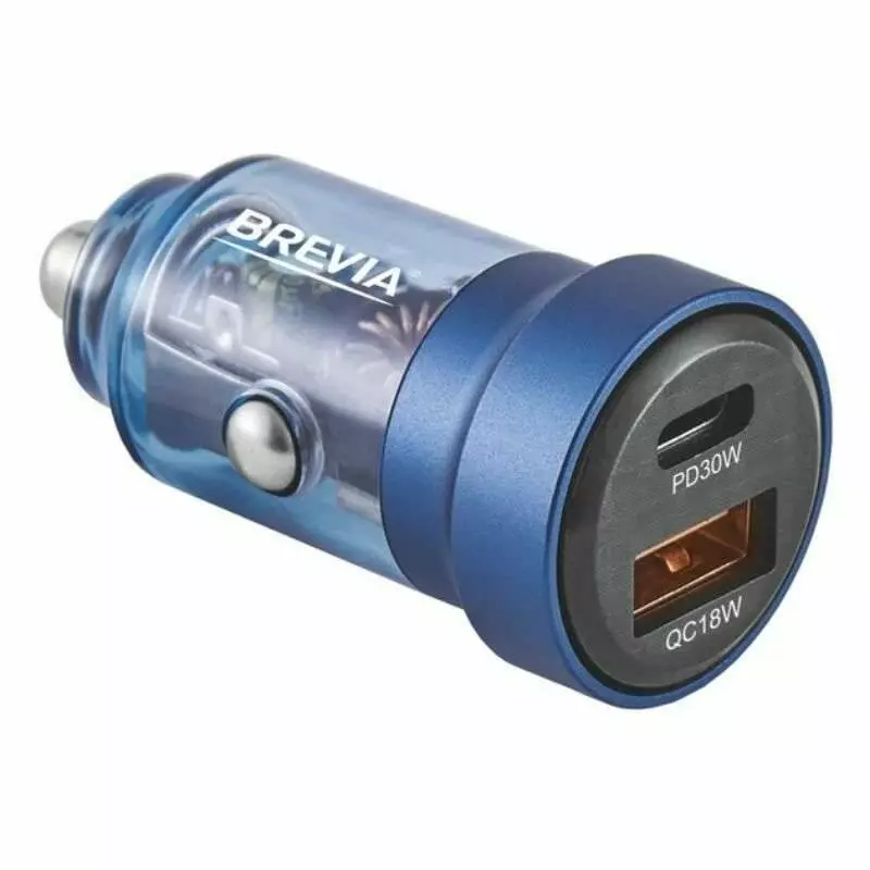 АЗУ Brevia ePower DualCharge 30W 1xUSB-C+1xUSB-A, прозр. синий (46530CABL)