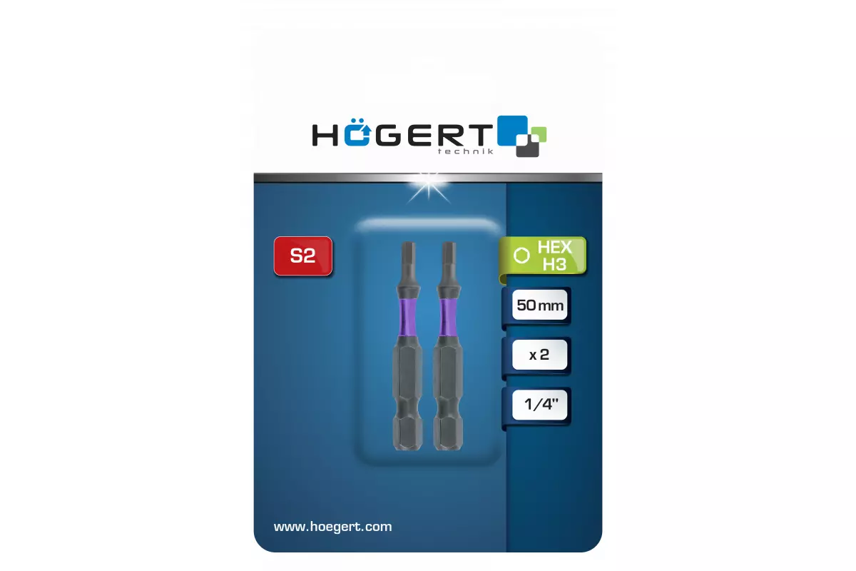 Биты ударные HEX 3, 50 мм, сталь S2, 2 шт. (HT1S175)