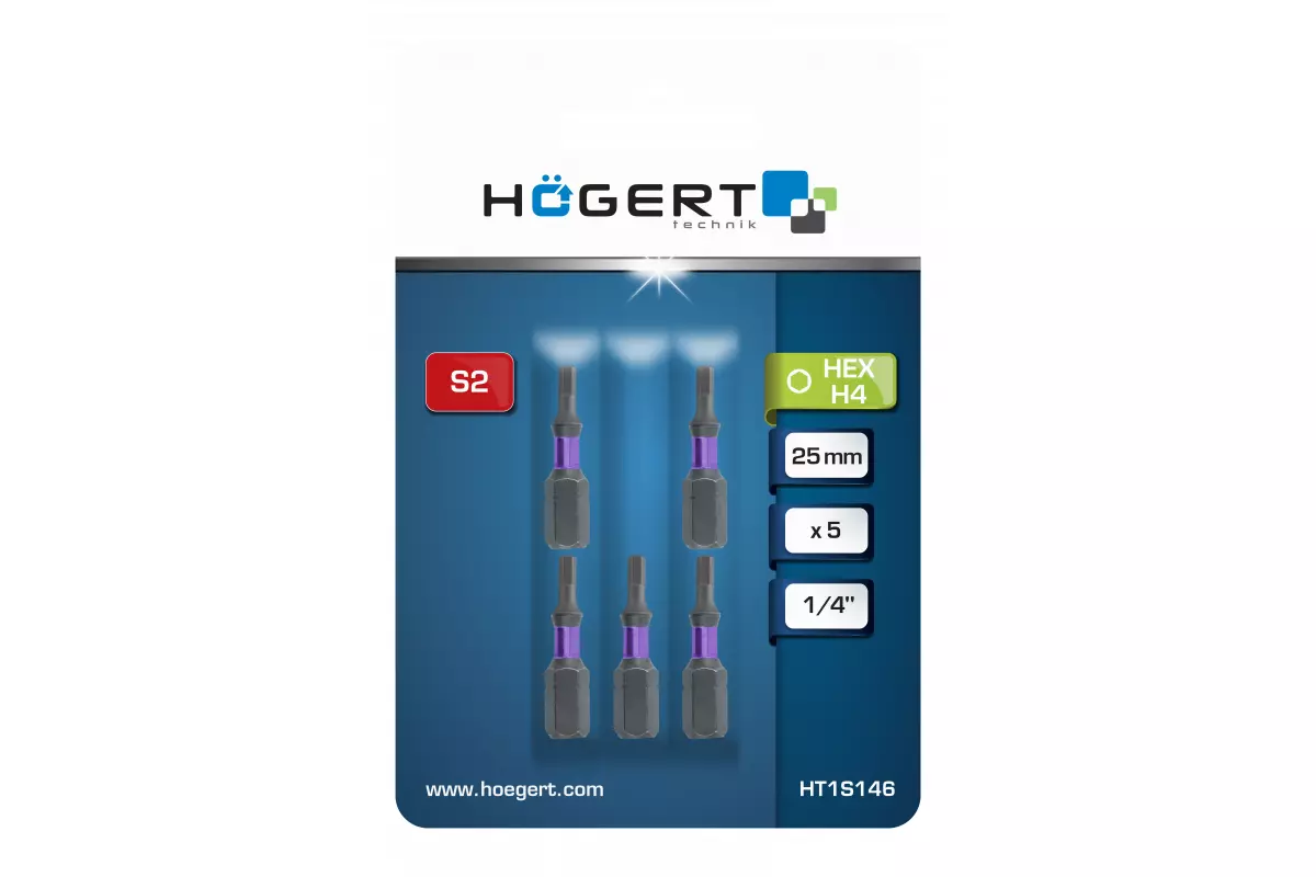 Биты ударные HEX 4, 25 мм, сталь S2, 5 шт. (HT1S146)