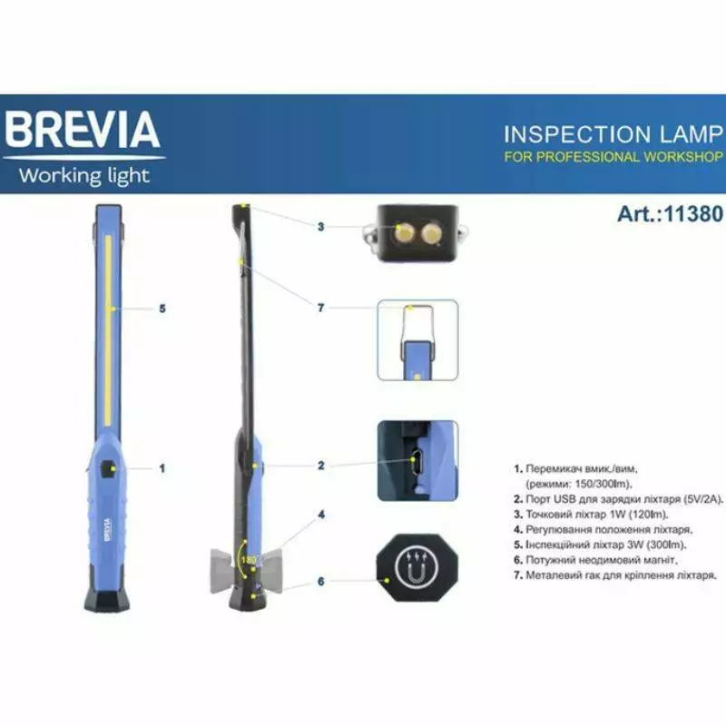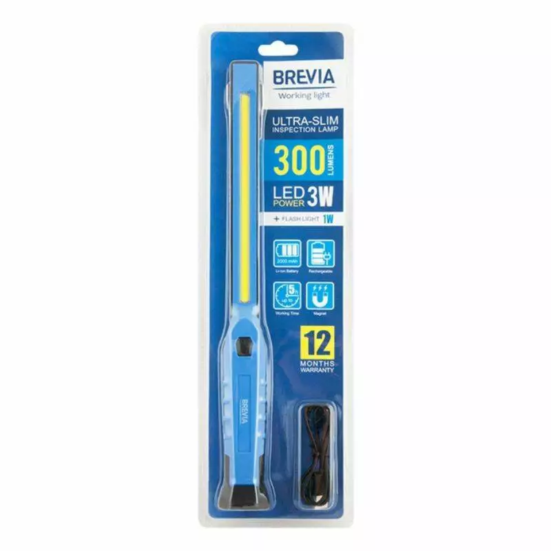 Brevia LED Ультра-тонка інспекційна лампа 3W COB+1W LED 300lm, 2000mAh, час роботи до 3 год., IP20,