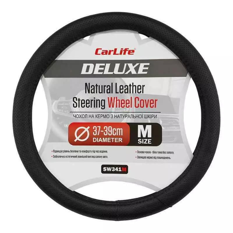 Чехол на руль Carlife 37-39см, кожа, черн, белая основа, один шов,