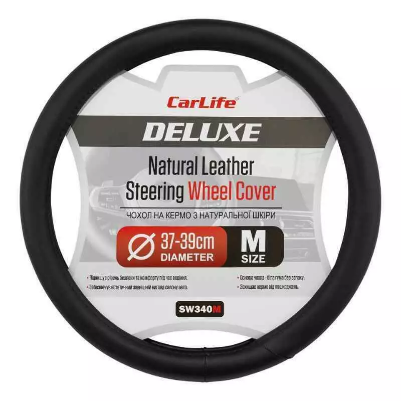 Чехол на руль Carlife 37-39см, кожа, черн. , белая основа, один шов