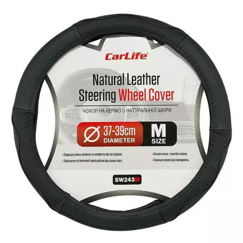 Чехол на руль Carlife 37-39см, кожа, черный (SW243M)