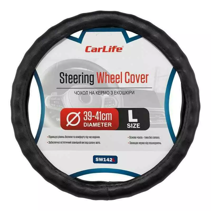 Чехол на руль Carlife 39 - 41см, экокожа, черний, один шов (SW142L)