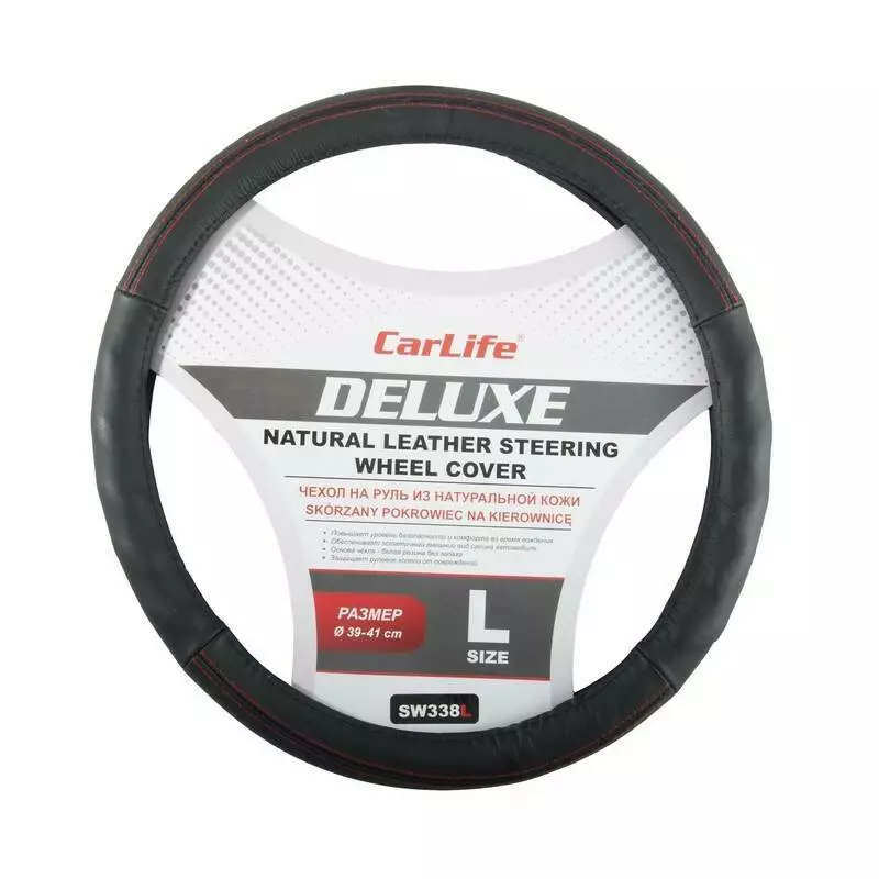 Чехол на руль CARLIFE Delux L (39-41см) черный SW338L – это передовая разработка в сфере производства чехлов на руль автомобиля. В данном чехле CARLIFE Delux L (39-41см) черный SW338L используется исключительно высококачественная натуральная кожа. Это позволяет вам передвигаться максимально комфортно в любое время года. В летнее время руки не потеют и не скользят по рулю. А зимой вы не ощущаете дискомфорта от контакта с холодным рулем.