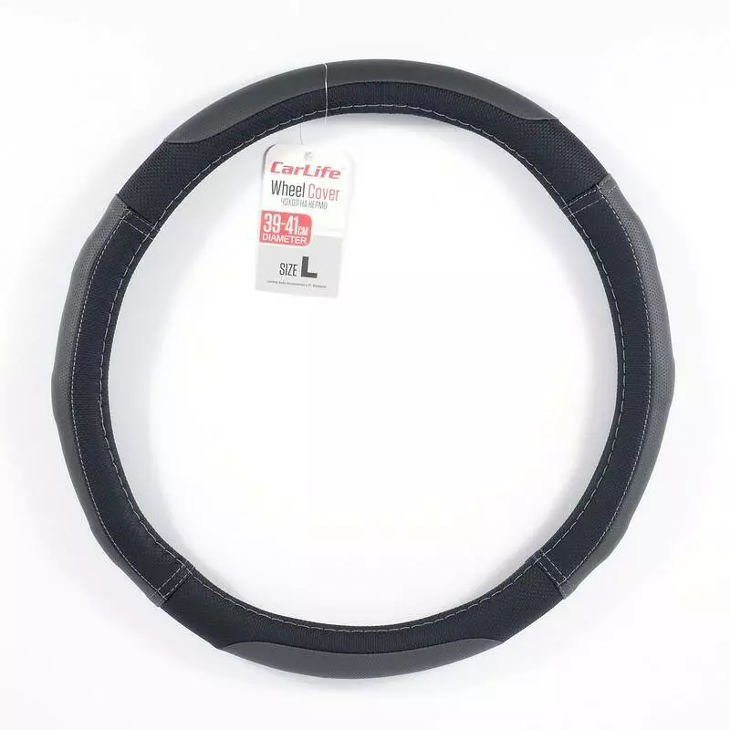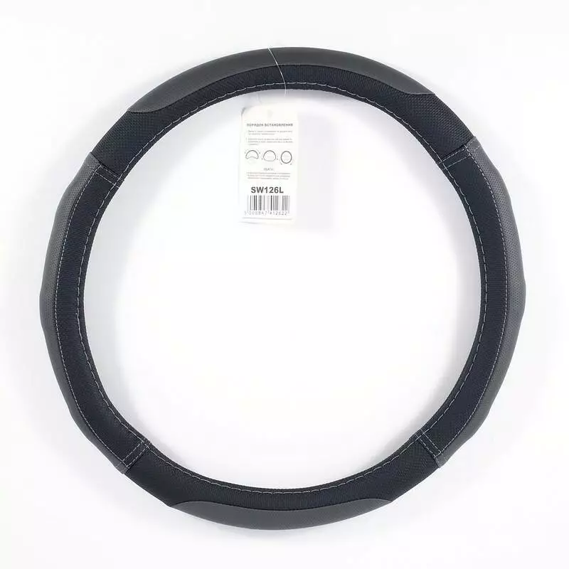 Чехол на руль L (39-41 см) из экокожи и белой резины CARLIFE черный с 4-мя серыми вставками и перфорацией (SW126L) – это передовая разработка в сфере производства чехлов на руль автомобиля. В данном чехле используется исключительно высококачественные материалы. Это позволяет вам передвигаться максимально комфортно в любое время года. В летнее время руки не потеют и не скользят по рулю. А зимой вы не ощущаете дискомфорта от контакта с холодным рулем.