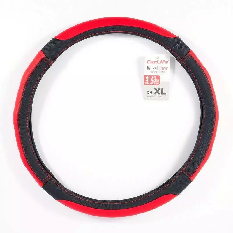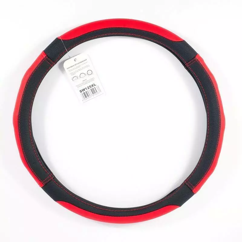 Чехол на руль XL (41-43 см) из экокожи и белой резины CARLIFE черный с красными вставками и перфорацией (SW125XL) – это передовая разработка в сфере производства чехлов на руль автомобиля. В данном чехле используется исключительно высококачественные материалы. Это позволяет вам передвигаться максимально комфортно в любое время года. В летнее время руки не потеют и не скользят по рулю. А зимой вы не ощущаете дискомфорта от контакта с холодным рулем.