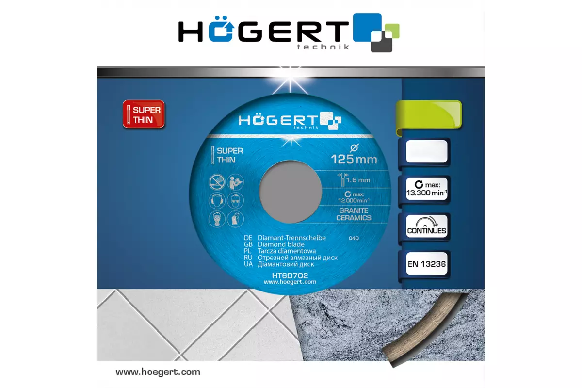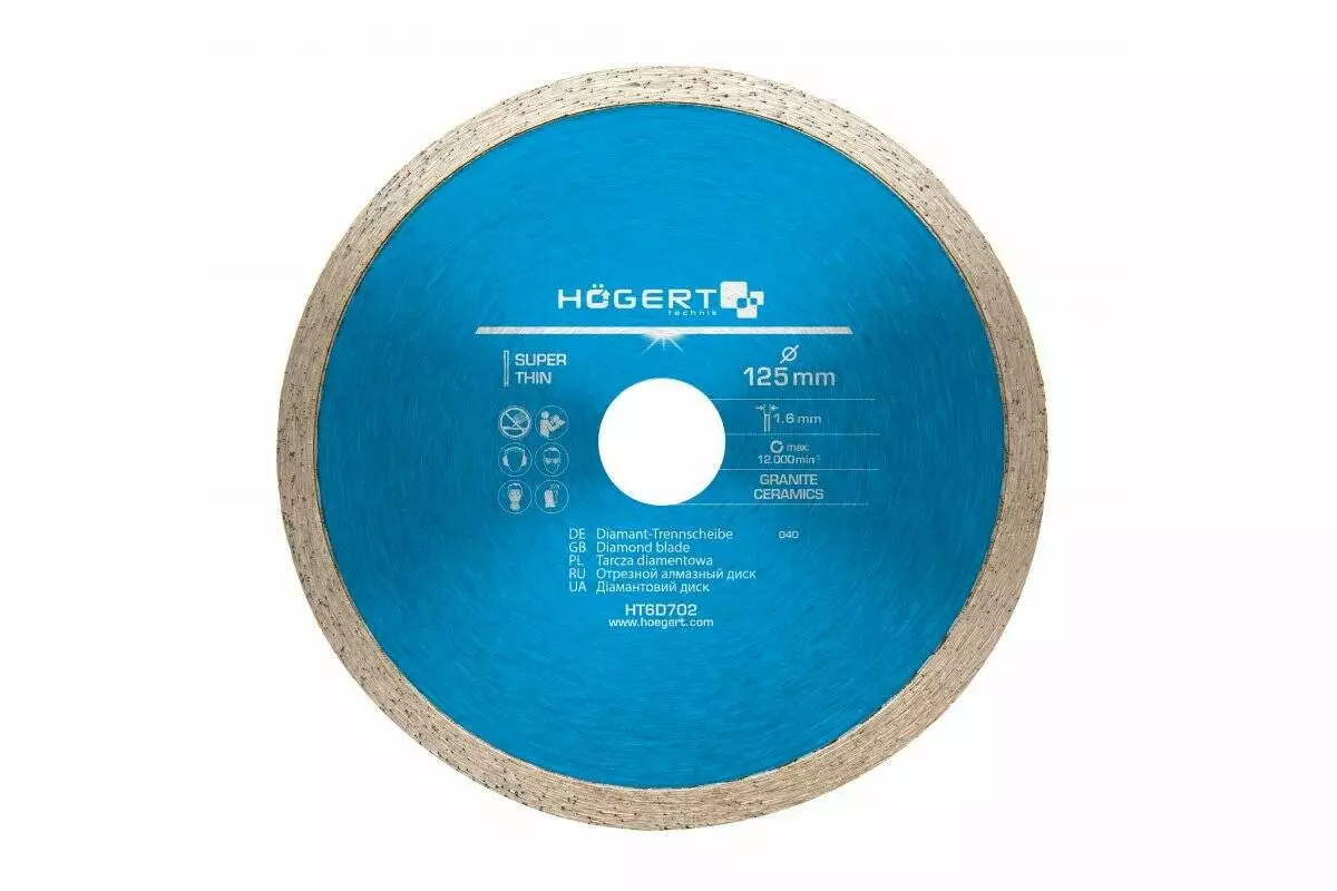 Диск отрезной алмазный, сплошная кромка 125 х 1,6 х 22,2 мм (HT6D702)