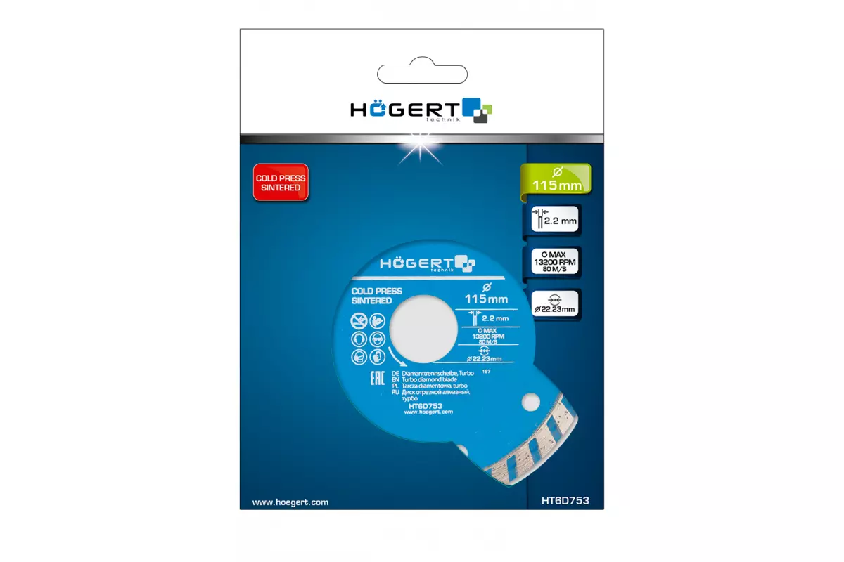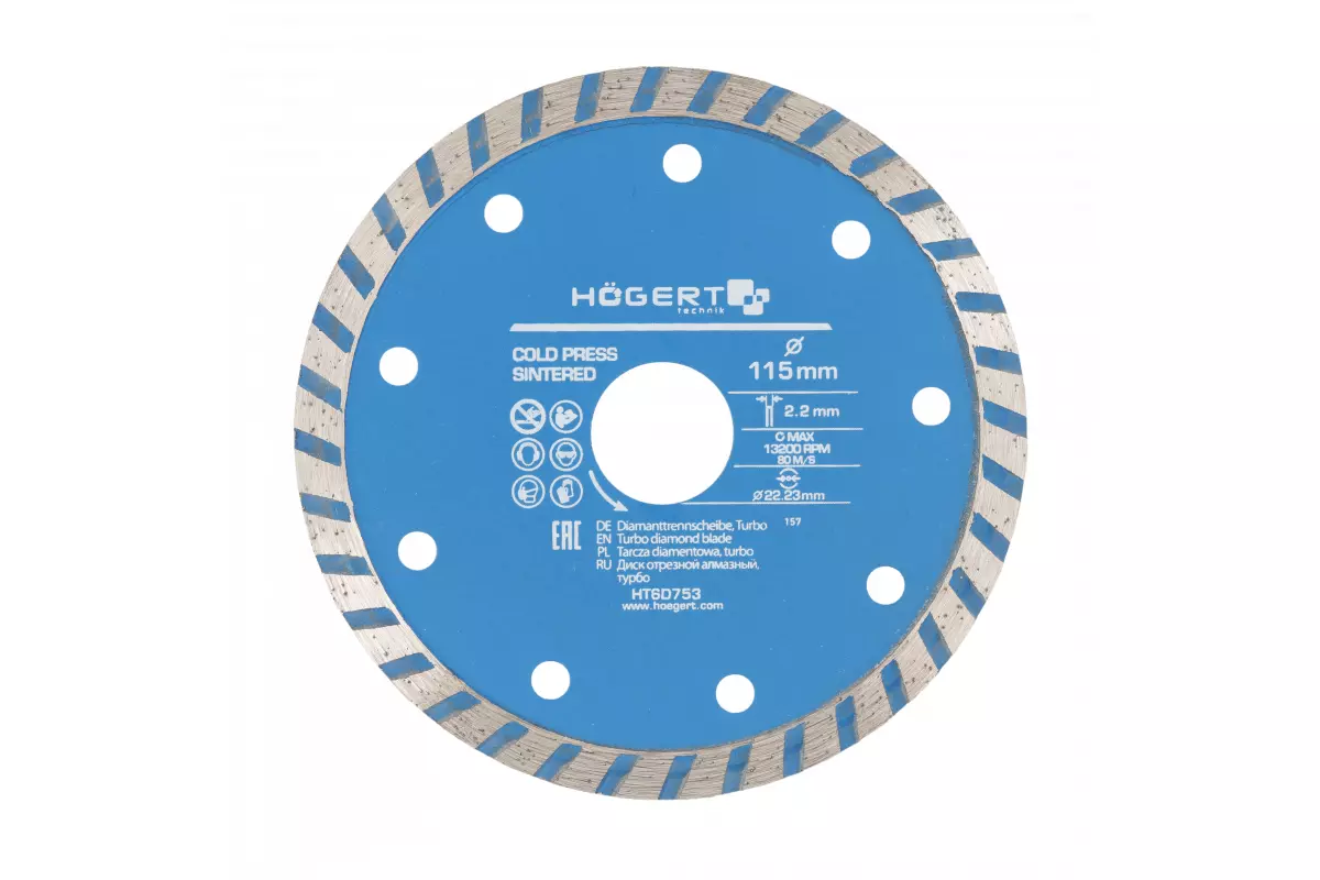 Диск отрезной алмазный, turbo 115 х 2 х 22,3 мм (HT6D753)