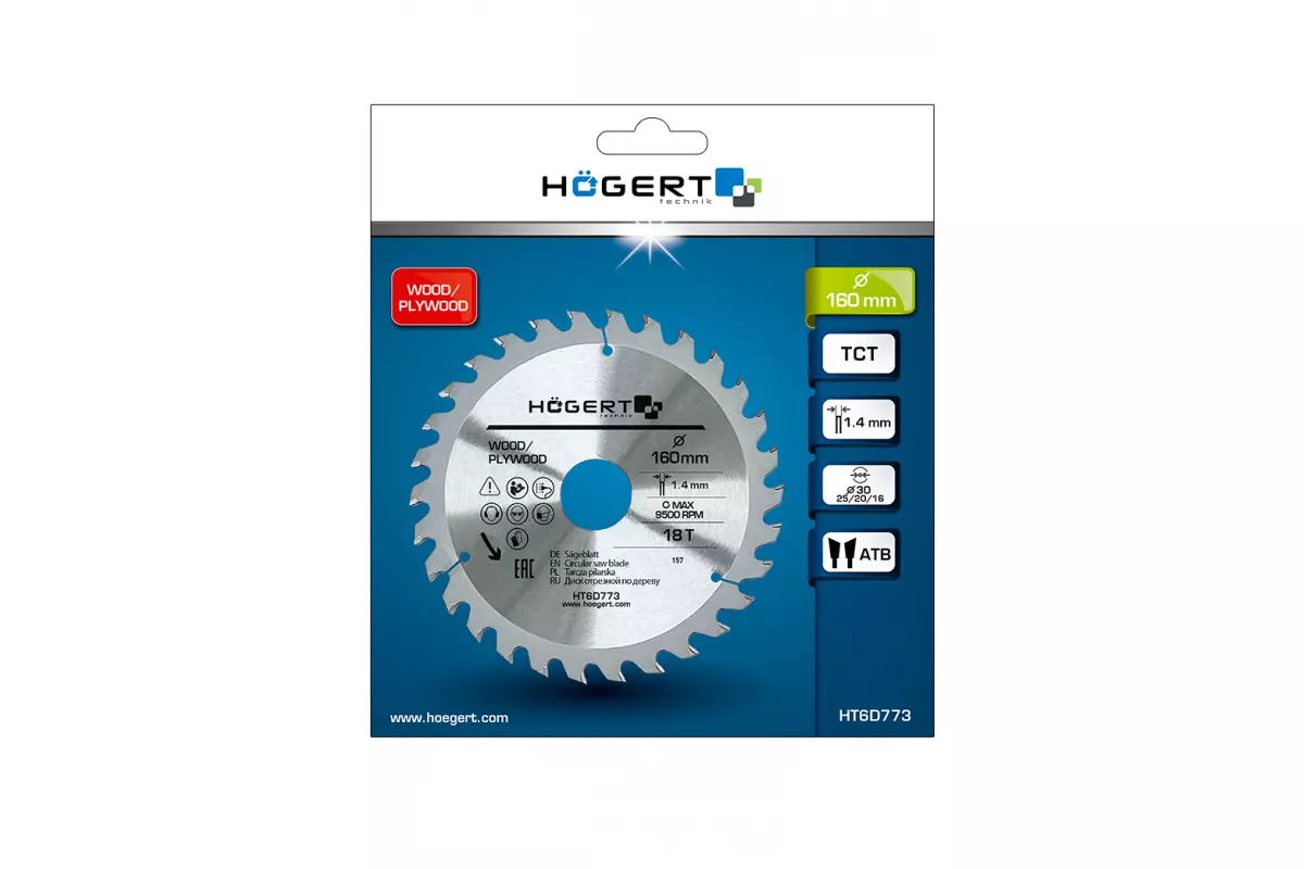 Диск пильный по дереву 160x18Tx30, Mn65 (HT6D773)