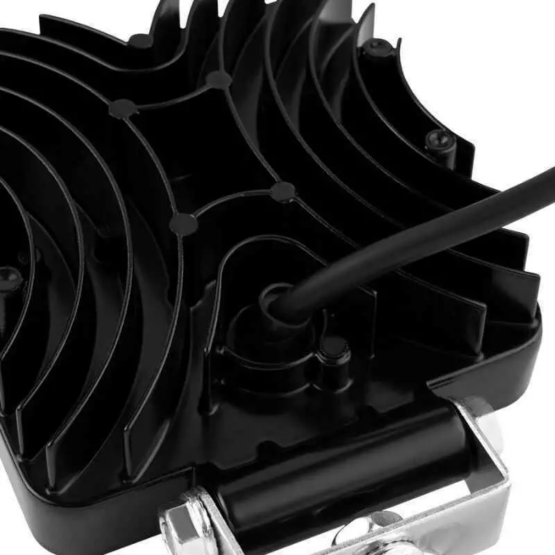 Корпус квадратной формы выполнен в классическом чёрном цвете, устойчив к механическим повреждениям и неблагоприятным погодным условиям. Компактные размеры позволяют устанавливать фару в ограниченных пространствах без потери функциональности.