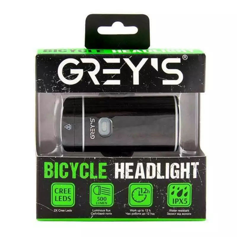Фара на велосипед на руль 500Lm Grey's 1800mAh IPX5 4 режимов до 12 часов работы (GR10140)