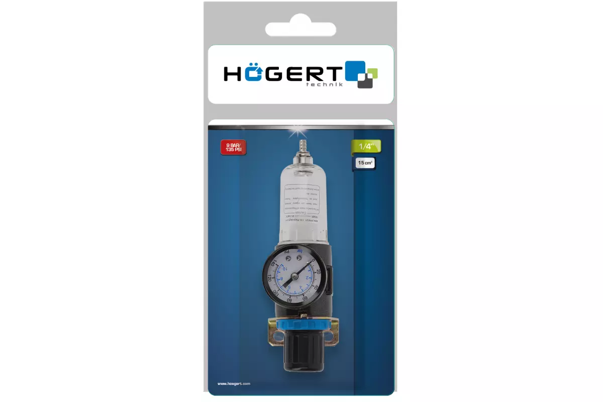 Фильтр-регулятор с манометром пневматический 1/4", 15см³, 9 бар/135 PSI (HT4R871)