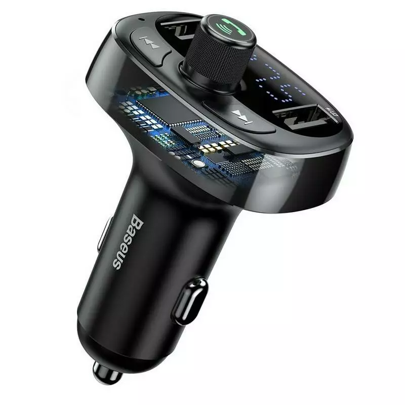 FM-трансмиттер модулятор Baseus + Автомобильное зарядное устройство Bluetooth 2.4A 2USB Black (CCALL-TM01)