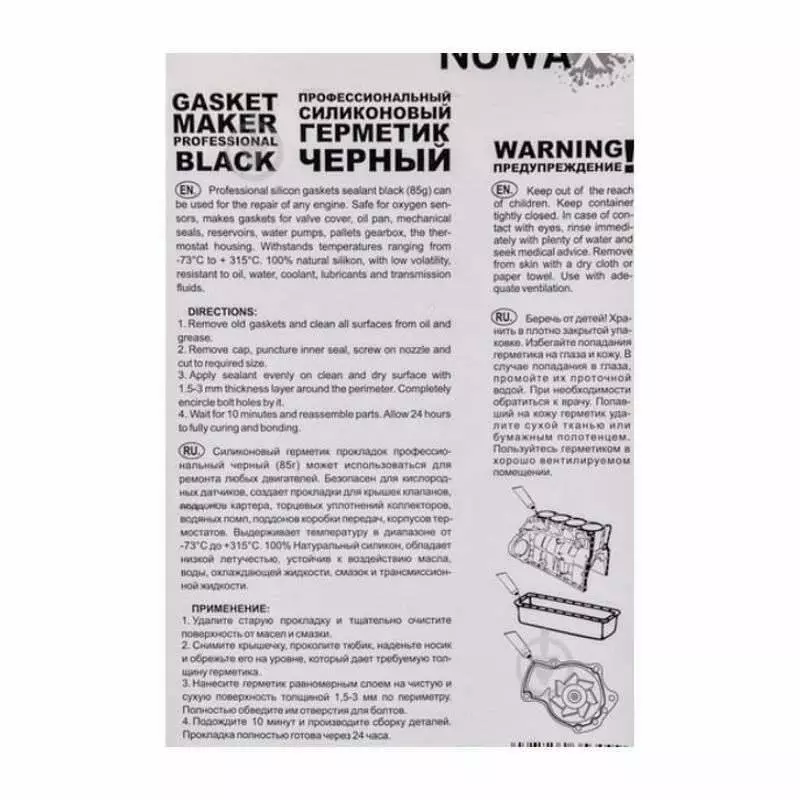 Силиконовый герметик прокладок профессиональный черный (85 г) может использоваться для ремонта любых двигателей. Безопасен для кислородных датчиков, создает прокладки для крышек клапанов, поддонов картера, торцевых уплотнений коллекторов, водяных помп, поддонов коробки передач, корпусов термостатов. Выдерживает температуру в диапазоне от -73°С до +315°С. Натуральный силикон 100%, обладает низкой летучестью, устойчив к воздействию масла, воды, охлаждающей жидкости, смазок и трансмиссионной жидкости.