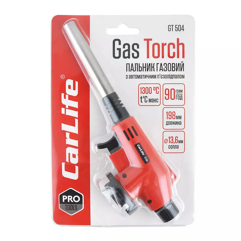 Горелка газовая с пьезоподжигом Carlife, сопло: Ø - 13,6мм, дл. - 76мм