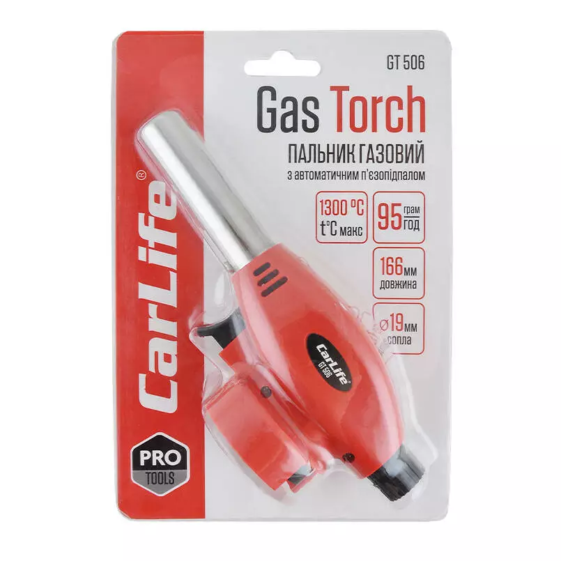 Горелка газовая с пьезоподжигом Carlife, сопло: Ø - 19мм, дл. - 68мм, керам. защита