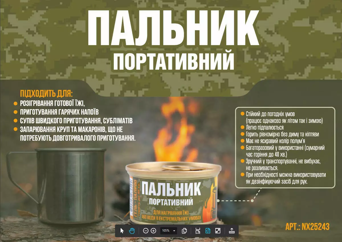 • Паливо: Гель-паливо