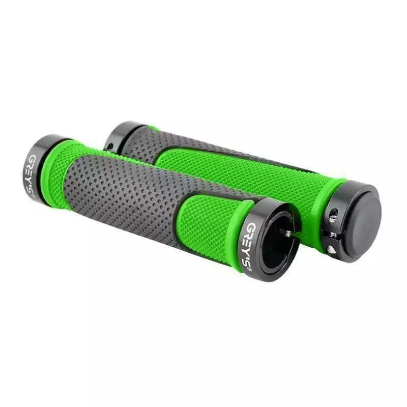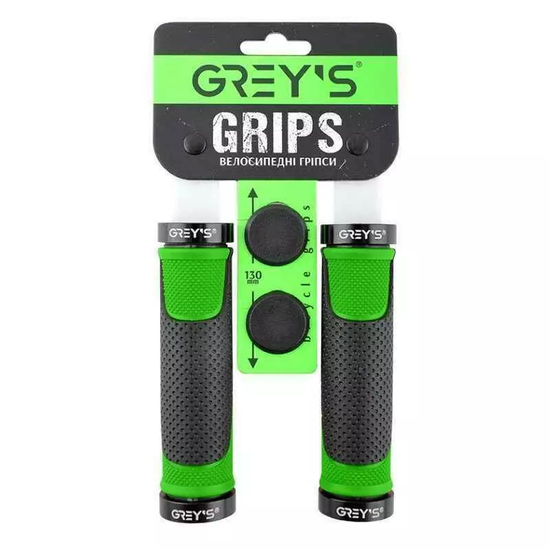 Грипсы на велосипед 13см Grey's с двухсторонним замком и заглушками зеленые 2шт (GR17220)