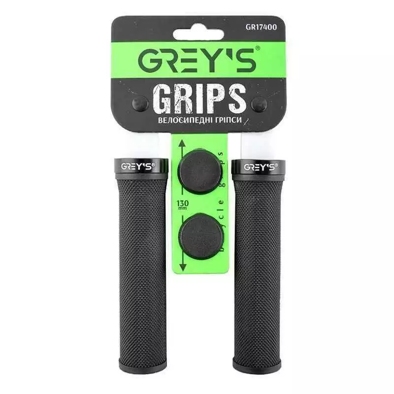 Грипсы на велосипед 13см Grey's с односторонним замком и заглушками черные 2шт (GR17400)