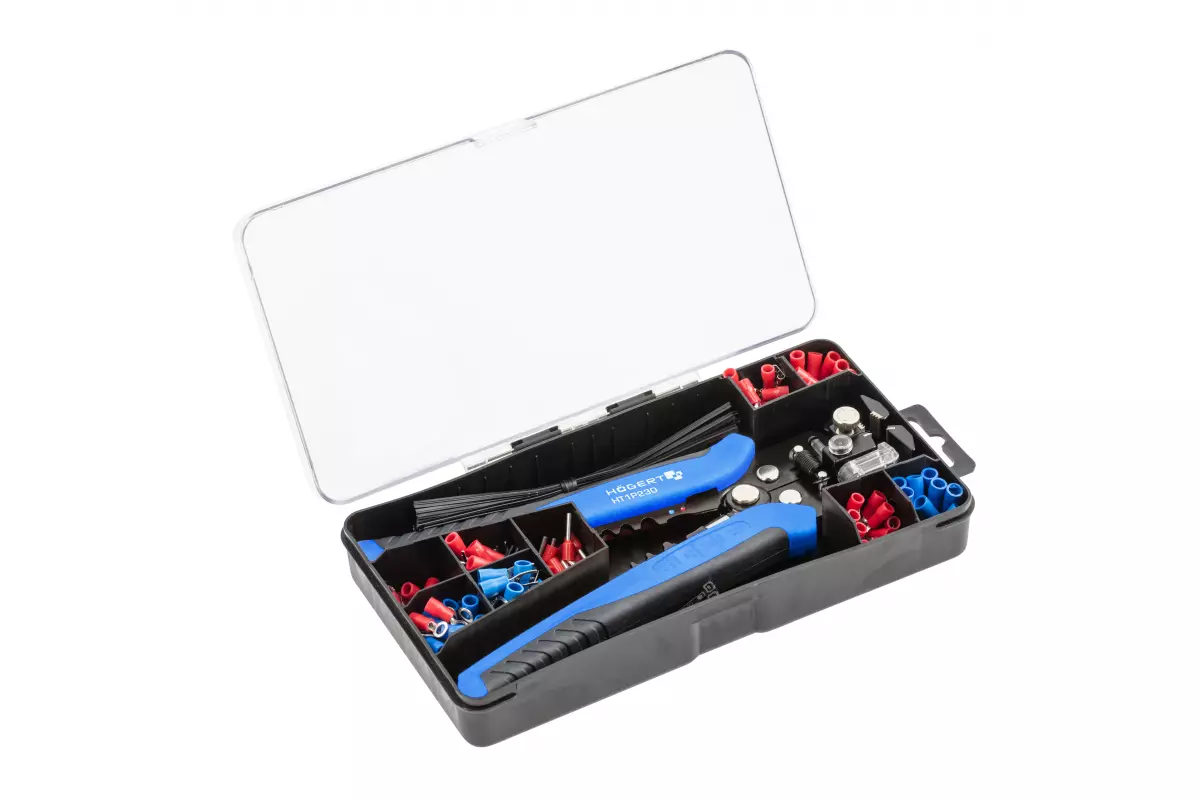 HOEGERT Клещи зачистные с набором клемм 200 элементов (HT1P230)