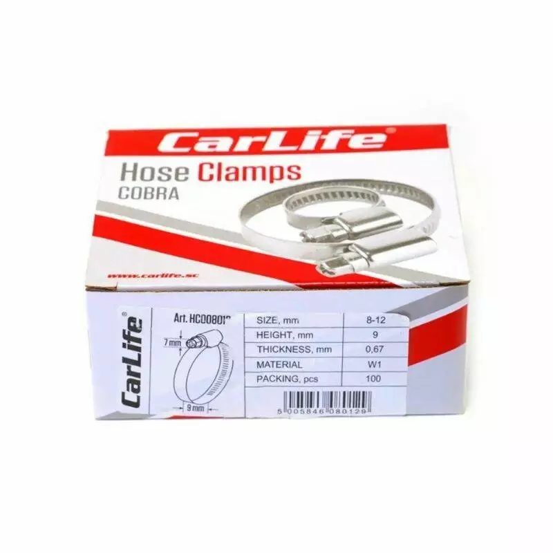 Хомут оцинкованный CARLIFE 8-12 мм