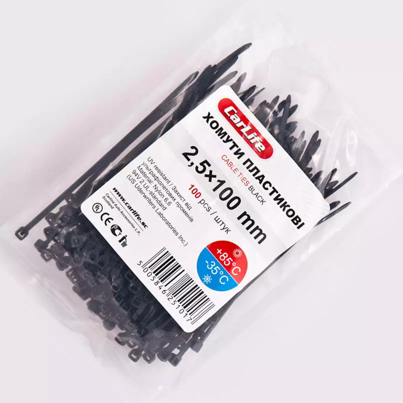 Хомуты пластиковые CARLIFE 2,5x100 мм Черные