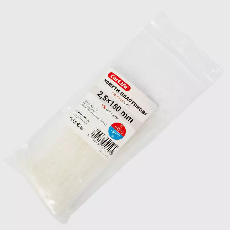 Хомуты пластиковые CARLIFE 2,5x150 мм Белые