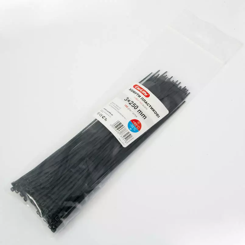 Хомуты пластиковые CARLIFE 3.0x250 мм Черные