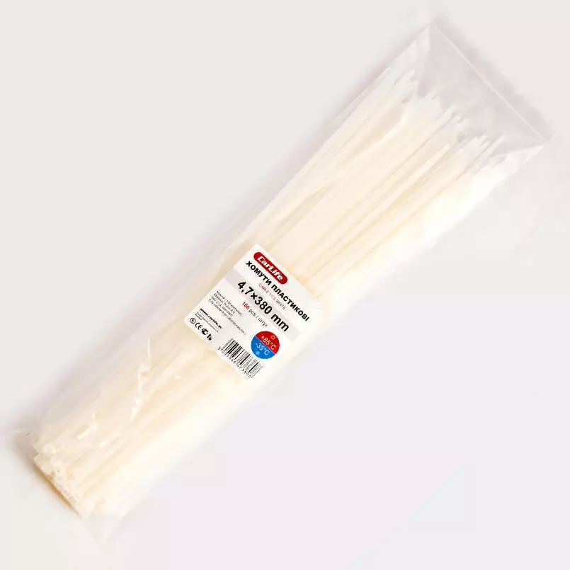 Хомуты пластиковые CARLIFE 4,8x380 мм Белые