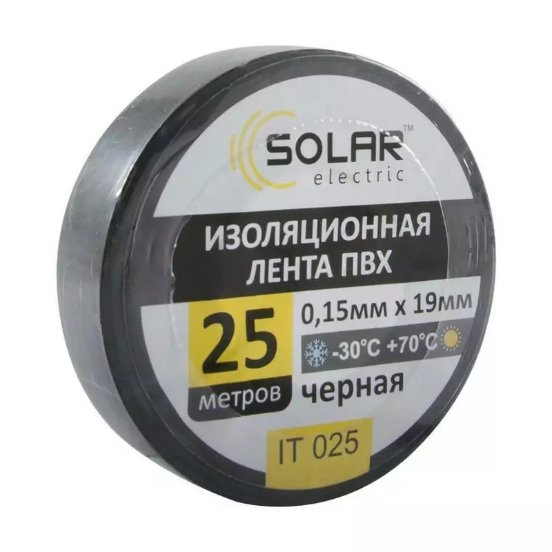 Изолента SOLAR IT025 черная 25м