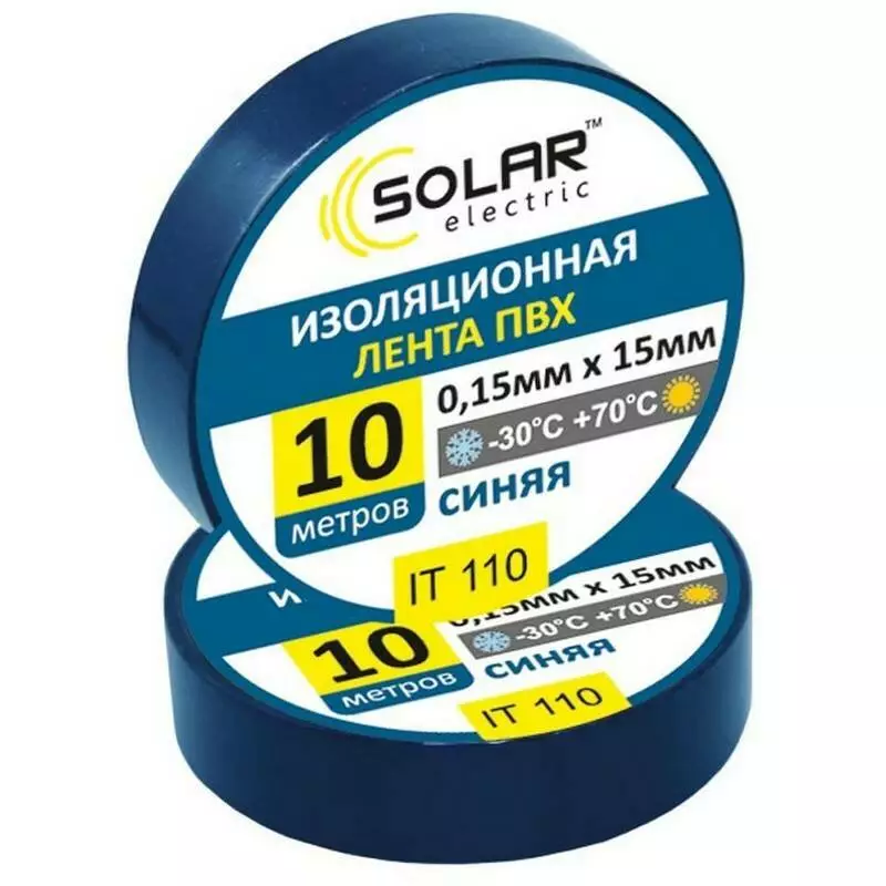 Изолента SOLAR IT110 синяя 10м