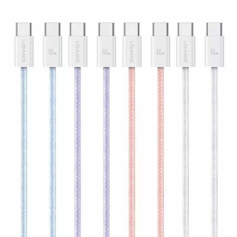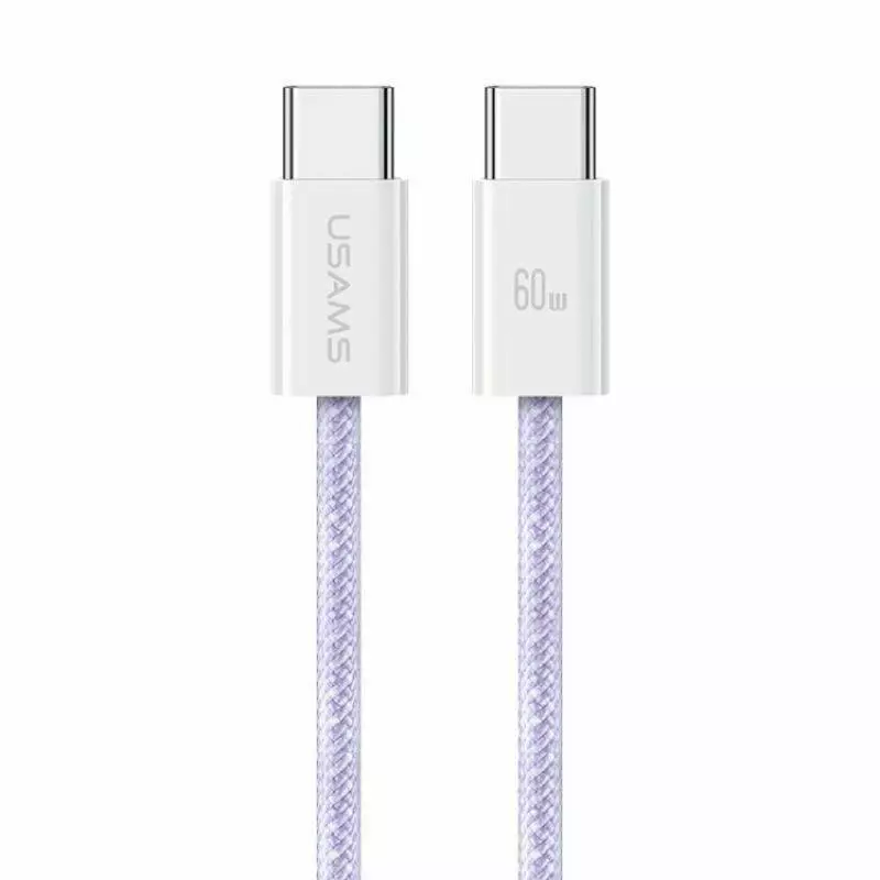 Кабель Usams PD60W Type-C To Type-C Rainbow Braided Fast Charging Cable 1.2m Бузковий