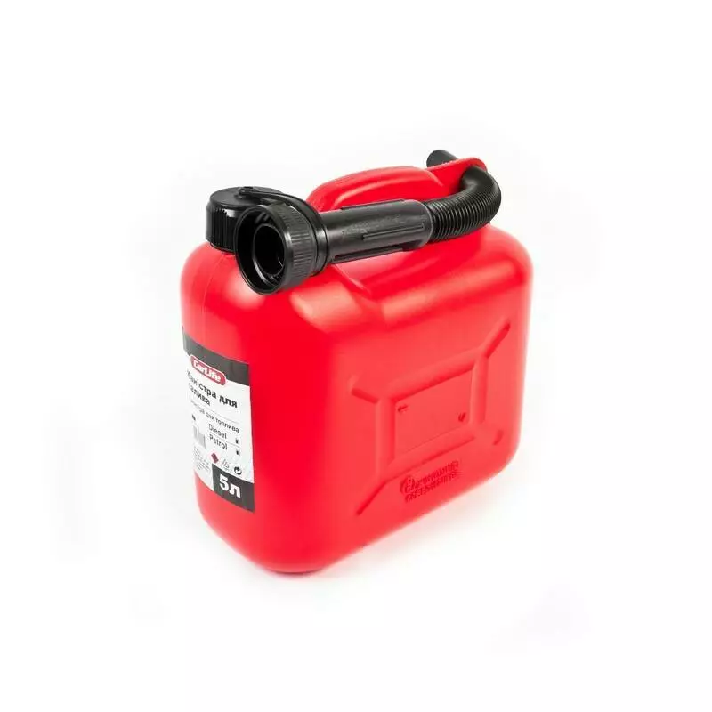 Имеет маркировку, что разрешает использовать канистру для транспортировки бензина и дизельного топлива, а также масла. Канистра комплектуется гибким шлангом для заправки топлива в бак.