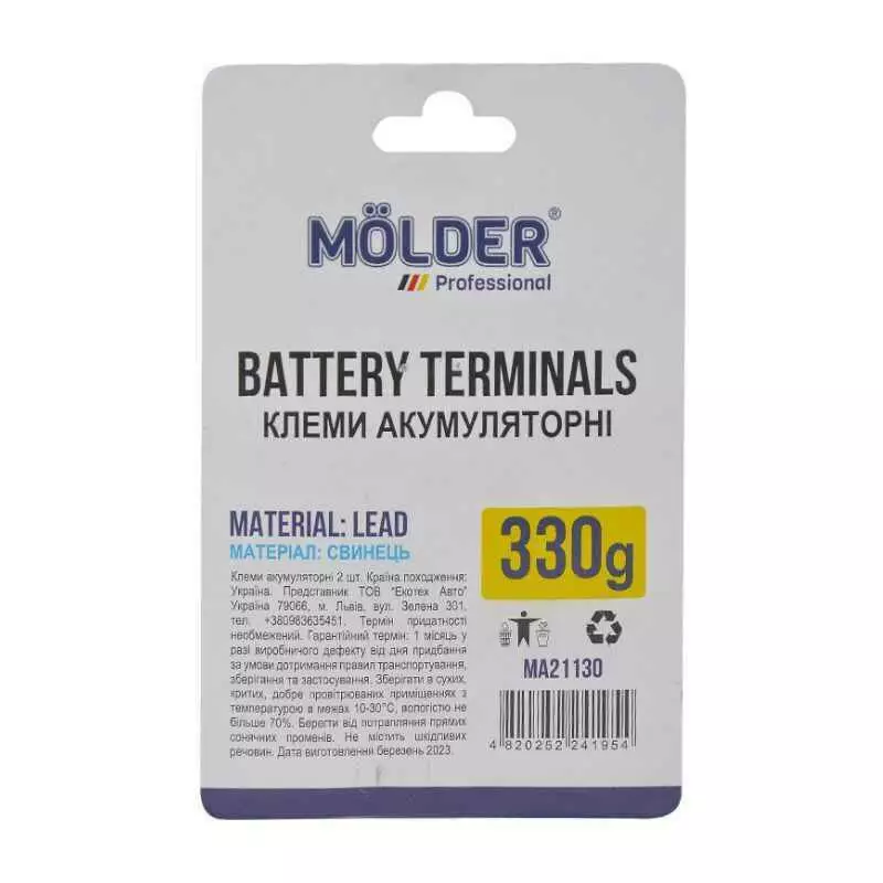 Клеммы аккумуляторные Molder свинец 330г (MA21130)